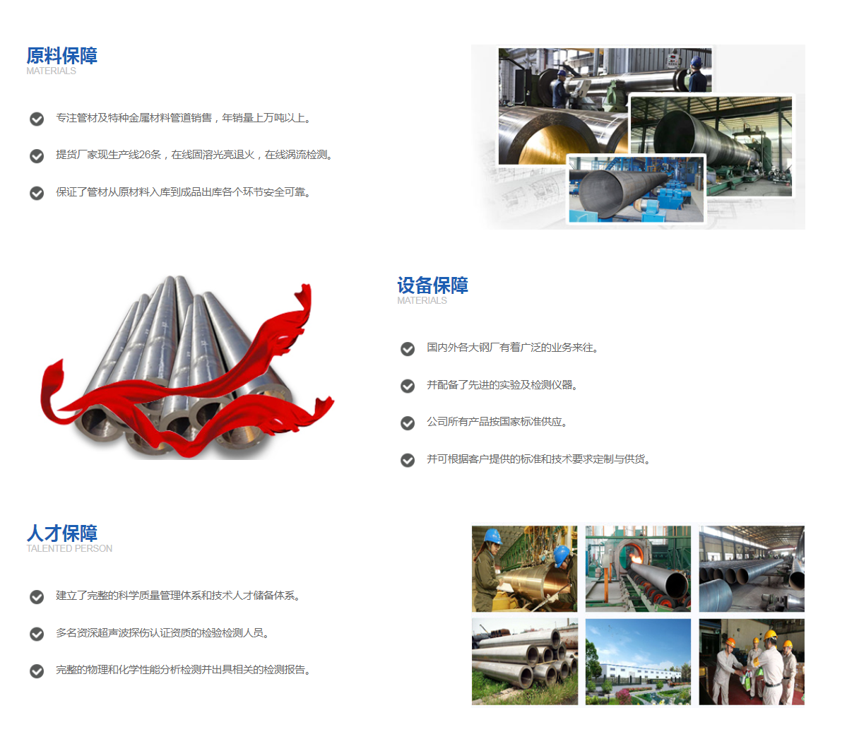 山東鑫盛鑫鋼鐵有限公司是一家專業銷售:無縫鋼管,合金管,異型管,精密管,圓鋼,軸承鋼的大型無縫鋼管廠廠家。可定做,多種規格,多種型號的無縫鋼管。另常年兼營成都、包鋼、冶鋼、魯寶、鞍鋼、安陽、洪都、天津等幾大鋼廠的國產進口的無縫鋼管、無縫管、流體鋼管、直縫焊管,經營品種多、規格齊全,保質保量,常年庫存保有量7000噸以上。所售產品均執行國家標準,適用于工程、煤礦、紡織、電力、鍋爐、機械、軍工等各個領域。公司始終堅持“公正、客觀、科學、誠信”的經營原則,重合同、守信譽、保質保量、按期交貨”。多年來公司憑借良好的信譽、優質的產品、低廉的價格享譽全國30多個省、市、自治區,產品出口歐洲、南美等十多個國家,深得用戶信賴! 常備材質:20#、45#、20G、16Mn、27SiMn、12Cr1MoVG、15CrMo、T91、10CrMo910、STFA25(P5)、STFA26(P9)、P11、P12、A335P91、A335P92、WB36[15NiCuMoNB5]、鋼研102(12Cr2MoWVTiB)等。執行標準為:結構管GB8162-1999、流體管GB8163-1999、低中壓鍋爐管GB3087-1999、液壓支架管GB17396-1999、高壓鍋爐管GB...